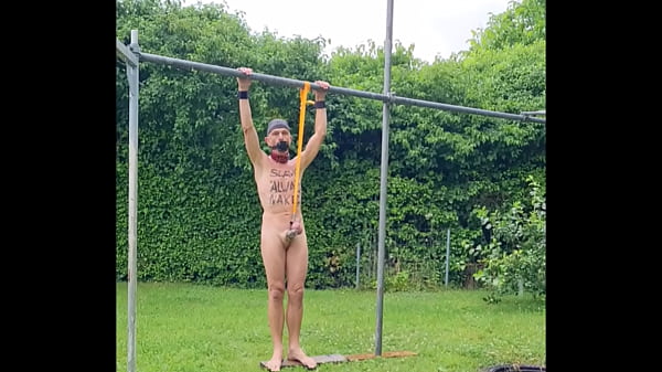 0 05:00 0% turn naked pathetic slave outdoor into a dirty fag, caught jerk off, tied up at his testicles, CMNM
